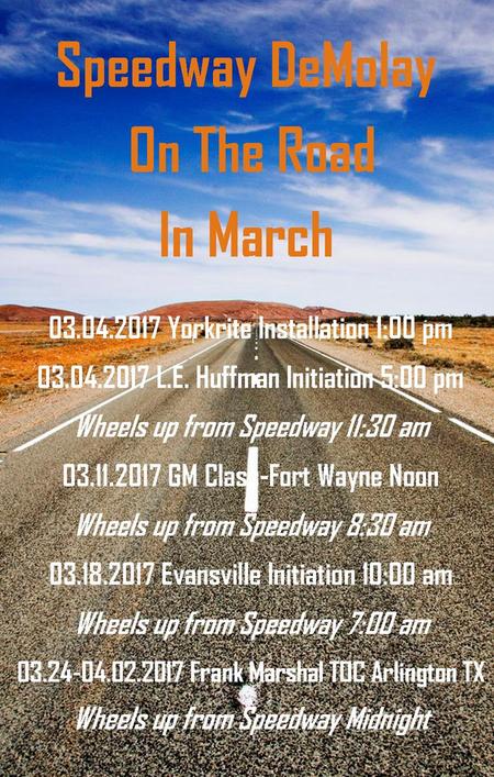 Between its own chapter initiations, assisting with Manitou Chapters Phoenix class, the upcoming GM Class and an additional initiation in Evansville, Speedway DeMolay has been criss crossing the Hoosier State supporting Indiana DeMolay. The March 18th Evansville Compton degree work begins a 22 day stretch of degree work, practice and not one but two Tournament Of Champions in back to back weekends with the Frank Marshall TOC and the Heartland TOC which is back in Indiana.
